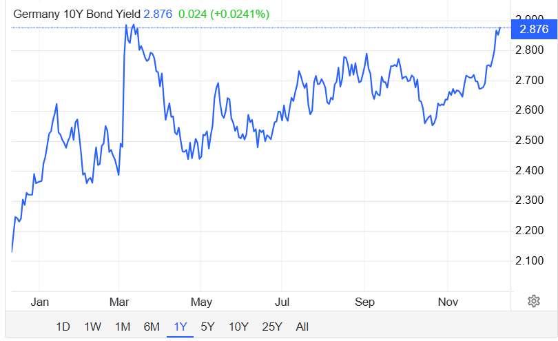 Het 10-jaars Bund-rente van Duitsland steeg naar 2,9%, het hoogste niveau sinds maart 2025, terwijl het Amerikaanse 10-jaars staatsobligatierendement boven de 4,2% steeg, een hoogste van drie maanden. Japanse staatsobligatierentes bereikten hun hoogste niveau sinds 2007, en de Britse 10-jaars gold-rentes schoten naar 4,6%. In Australië brak het 10-jaars rentepercentage voor het eerst sinds eind 2023 boven de 4,8%.